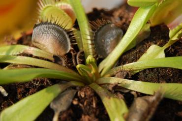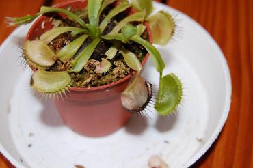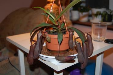 Duma mojej hodowli, dorosła muchołówka o 3-centymetrowych pułapkach nagle zwariowała. Stoi na południowym balkonie, w związku z czym może być nieco 'przejedzona' i myślałam że to jest powód marnienia pułapek. Okazało się jednak że nagłe zmarnienie całej rośliny spowodowane jest rosnącym pąkiem kwiatowym.. Czytałam że muchołówki kwitną wiosną, a my w kalendarzu jakby nie patrzeć mamy wrzesień.. Czekać na kwiaty czy wyciąć?