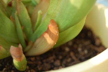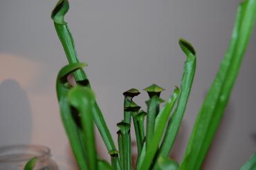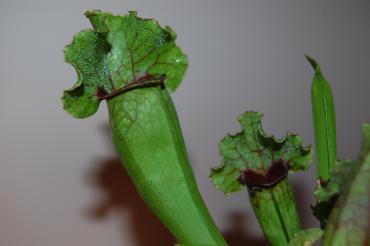 Witam. Kupiłam sobie S. Purpureę ponad 3 miesiące temu. Stała sobie i stała, co kaptur urósł to usechł. Już pomijam fakt że mimo stania w pełnym słońcu na południowym balkonie kaptury są ciągle zielone i ani myślą o wybarwieniu.. Za to dziś przy uzupełnianiu wody w podstawce patrzę na młode kapturki i oto co widzę. Co poradzicie?