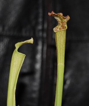 Witam. Kupiłam sobie S. Purpureę ponad 3 miesiące temu. Stała sobie i stała, co kaptur urósł to usechł. Już pomijam fakt że mimo stania w pełnym słońcu na południowym balkonie kaptury są ciągle zielone i ani myślą o wybarwieniu.. Za to dziś przy uzupełnianiu wody w podstawce patrzę na młode kapturki i oto co widzę. Co poradzicie?