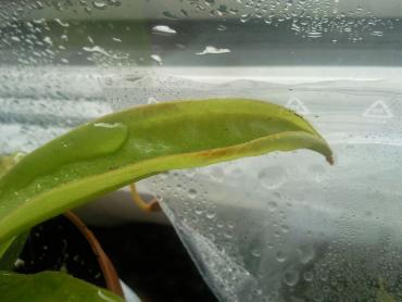 Ma wilgotność na poziomie 55-70%. Temperatura 23-25 stopnie Celsjusza. Stożek wzrostu nie jest zakopany. Zdjęcia są wyraźnie jak na telefon. Ma zapewnioną duża ilość światła jak inne moje dzbaneczniki. Stoi na południowym parapecie (zacienionym trochę). W odrobinie lepszym stanie do mnie roślina dotarła jak wspominałem. Poczekam na opinie innych użytkowników i ewentualne porady.