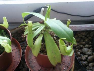 Witam. Na pierwszym zdjęciu w 100% jest Nepenthes 'Ventrata' (alata x ventricosa). Druga roślina Nepenthes 'Miranda' (maxima x(northiana x maxima)). Trzecia roślina to prawdopodobnie krzyżówka Nepenthes khasiana x ventricosa. Bardzo piękne i dorodne rośliny masz jestem pod wrażeniem.