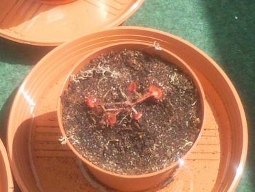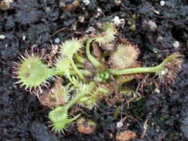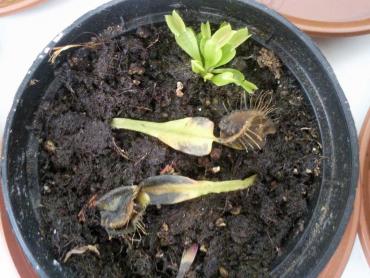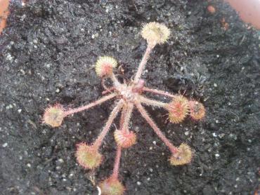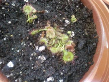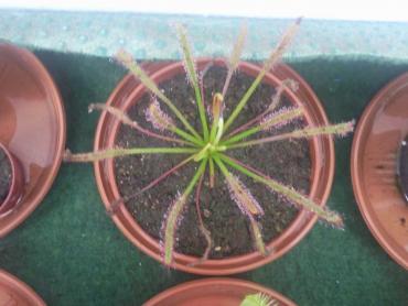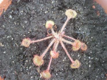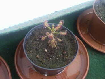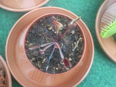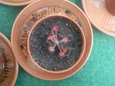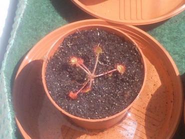 Witam. Zakupiłem D.rotundifolia przyszła do mnie w opłakanym stanie w dniu 25.07.2012 z Carnisana. Jak przyszła była w podłożu martwym mchu od razu ją przesadziłem do mieszanki dla rosiczek. Od 8 dni może wypuściła max. 2 liście i zero rosy. Jest trzymana z innymi roślinami owadożernymi na południowym balkonie. Zawsze ma wodę w podstawku. Moje pytanie brzmi czy rosiczka odbije z tego stanu co jest ? Dla porównania zamieszczę zdjęcie jak ją przesadziłem.