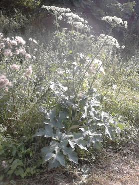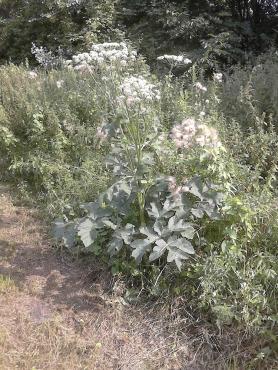 Zapomniałam dodać, że tamte zdjęcia są sprzed jakichś 3 tygodni. Aktualnie rośliny przekwitły, za to pokazało się pełno malutkich barszczyków - już na pewno zwyczajnych . Niecałe 0,5m wyskości. Te duże nie mają czerwonych plamek, jedynie ślady po żerujących na nich ślimakach. Teraz nie mogłam zrobić zdjęć dolnym liściom, bo są zarośnięte przez jeżyny, górne liście mają ok. 0,4m. Na jednym baldaszku było 20-25 nasion, kwiatostan miał ich ok. 20. Czyli to raczej bardzo wyrośnięty barszcz zwyczajny? Nope, mam 1,7m i kwiatostany są sporo wyższe ode mnie, tylko ten na drugim zdjęciu był mniej więcej mojego wzrostu. Zdjęcia robione z odległości ok. 2-4 metrów, stąd ta perspektywa (miałam na smyczy psa, już kiedyś ugryzł pokrzywę, wolałam nie ryzykować...)