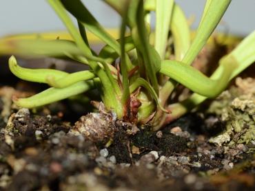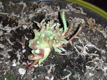 Miesiąc przed końcem kalendarzowej zimy czuć już wiosnę w powietrzu, a wg. prognoz temperatury nie powinny już spadać znacznie poniżej 0. Zrobiłam dziś porządek w misie, usuwając większość martwych liści (na niektórych zauważyłam pleśń) i zrobiłam przegląd tego, co ocalało. Na ten moment i moje chamskie oko, wydaje mi się, że nie poniosłam w czasie mijającej zimy żadnych większych, a w każdym razie zauważalnych strat. Zlokalizowałam większość siewek, a także obydwa zasadzone pędy kwiatowe - obydwa są suche, ale u podstawy można zauważyć drobne listki. Jeżeli wszystko dobrze pójdzie, to ten rok zapowiada się szalenie interesująco!