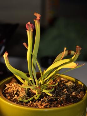 Kształt i kolor pułapek może się zmieniać podczas całego okresu wegetacyjnego, może być też zależny od jakiejś jednorazowej, nietrwałej mutacji. Serio, nie spotkałam jeszcze żadnym markecie "odmian" innych niż formy typowe lub od czasu do czasu mocniej wybarwionych, które można podciągnąć pod wspomnianego wyżej "red-greena". Na początku tego roku kupiłam naprawdę szałowo wybarwioną muchołówkę w Obi - była malutka, ale pułapki sprawiały wrażenie silnie łukowato wygiętych, i ten kolor! Jak wyszło "w praniu" łukowate wygięcie było jedynie złudzeniem, spowodowanym faktem, że blaszki liściowe były bardzo wiotkie i spód liścia, zazwyczaj niewidoczny, można było zobaczyć bez przeszkód, gdy pułapka się "przewróciła". Wystarczyło przesadzenie, rozdzielenie dwóch okazów, które splątały się w jednej doniczce i dużo słońca - nadal jest fantastycznie wybarwiona, ale blaszki liściowe i same pułapki nie są już w żaden sposób niezwykłe Myślę, że nie masz się co martwić, marketowe "zwyklaki" dostarczają podobnej radości, co "dziwadła".