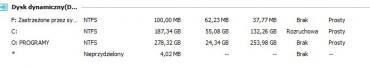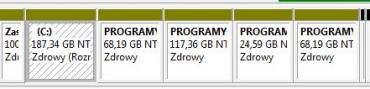 Sprawdzałem PM i EASEUS Partition Master @edit Problem w tym, że w każdym programie, partycję "PROGRAMY" oznacza się jako jedną: A fizycznie, są to cztery partycje: I to jest ten problem