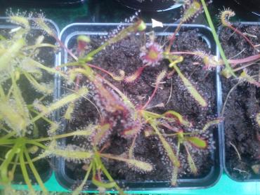 Kolejne zdjęcia (stan roślin po miesiącu). Rośliny poza szkłem Rośliny trzymane pod szkłem: Tych Capensis Albino trzymanych pod szkłem to boję się dotykać - widząc wielkość kropli na liściach tych jeszcze młodych roślin, nie jestem pewny czy palce mi się odkleją