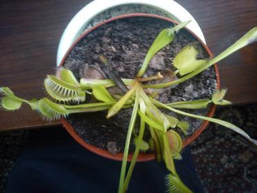 Witam mam problem z moją muchołówka ponieważ jakies 3 tygodnie po przesadzeniu zaczęły ciemnieć liscie i nie wiem czy to wina przesadzenia, przelania czy od mocnego słonca? Co radzicie z nią zrobić?