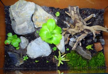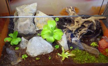 Witam,w tym temacie chciałbym pokazać wam moje małe terrarium. Więc zaczęło się od tego,że chodząc po piwnicy znalazłem małe szklane akwarium.Chciałem je jakoś wykorzystać,a przez to,że ostatnio bardzo spodobał mi się gatunek pinguicula,więc postanowiłem zrobić z tego domek dla tłustoszy. Wymiary: 40x25x23cm OSwietlenie Aquael deco light 11w Podłoże Torf+żwirek 1/1+keramzyt na dno Gatunki P.aphrodite,P.emarginata,P.hybride,P.tina i z góry: