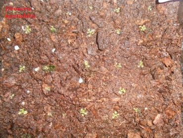 Witam dziś przesadziłem rosiczki ponieważ wykiełkowało ich sporo,zrobiłem korytko podzielone na cztery części każde po 20x20cm,niektóre rosiczki były jeszcze małe ale starałem się ich nie uszkodzić przesadzałem je dużą pęsetą z kawałkiem podłoża.Jak już pisałem jest ich bardzo dużo po ok 50 w korytku,spatulata troszkę mniej za to Albino całe mnóstwo zliczyłem 70 dalej dałem spokój i właśnie tu mam pytanie czy nie będzie ich za wiele na jednym miejscu?Wstawiam zdjęcia jak to wygląda.