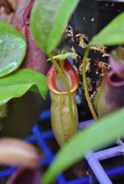 Wracam z kolejną porcją zdjęć roślin już po małej przeprowadzce Ogólnie rzecz biorąc nie spodziewałem się zmiany na lepsze ale poniższe zdjęcia dokładnie pokazują poprawę w wybarwianiu dzbaneczników: Zmiana u Rebecci: Zmiana u spectabilis x ventricosa: A teraz już dzbanuszki N. ventricosa N. truncata ( świeżo otworzony dzbanek ) N. bicalacarata nabrał już kolorów N. albomarginata nareszcie wypuściła porządną pułapkę N. ventricosa x maxima po przesadzeniu i przesiedleniu wypuścił dwukrotnie większy dzbanek N. sptahulata x ventricosa też rośnie w siłę N. sanguinea N. spectabilis x ventricosa I na koniec niezidentyfikowany pływacz Komentarze i oceny mile widziane