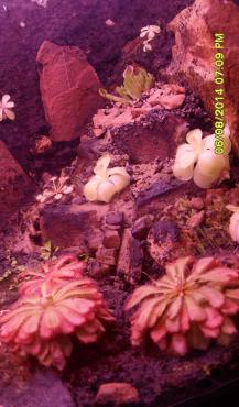 Witam, mam problem z rosiczką regia. Jest to pierwszy egzemplarz tego gatunku. Początkowo stała na parapecie którym z rana jest słońce a później doświetlałem świetlówkami 2x30w. Rośnie w samym torfie, wodę ma ciągle w podstawce w odpowiedniej proporcji do doniczki tak mi się wydaje doniczka 7cm woda 0,5cm. Liście zaczęły wyglądać jak na zdjęciach i nie miała rosy na liściach. Obciąłem pożółkłe liście i wstawiłem do akwarium. Wilgotność 70%+. Rosa pojawia się na liściach, ale dalej żółkną. Zastanawiam się co jest przyczyną, czy może podłoże jest gęste i przesadzić ją w torf z domieszką perlitu lub piasku? Dziękuje za wszelką pomoc.