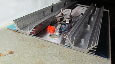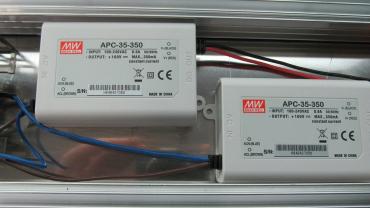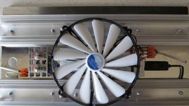 Sprawdzałem organoleptycznie jak mocno nagrzewa się blacha pod zasilaczami i nie zauważyłem różnicy w stosunku do innych miejsc na panelu. Zasilacze przymocowane są za pomocą taśmy termoprzewodzącej więc trochę ciepła odbierają, a one same pozostają ledwo cieple (wentylator daje radę ). Plan był taki, że gdyby nagrzewały się zbyt mocno miał na każdym być zamontowany mały radiator.
