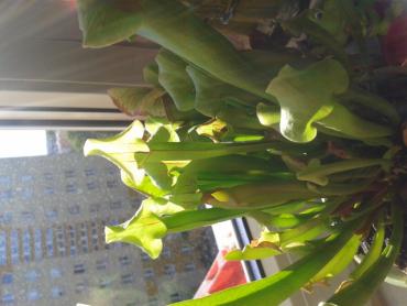 szerze to kształt liści ma jak purpurea tzn one się układają w taki trójkącik cięzko by jej było łapać w to deszczówkę a kolor ma typowo jak flava jak dla mnie to jakaś hybryda i dodatkowo co któryś kielich usycha uprzedzam, że roślina postawiona jest na ostrym słońcu w godzinach od około 11 do wieczora. mogę spróbować dodać zdjęcia , ale pasowałoby ze roślina wchłonie wodę bo w tym kapturze w którym jest mucha jest ciecz. dziękuje ślicznie za szybką odpowiedź Nieuczesany -