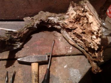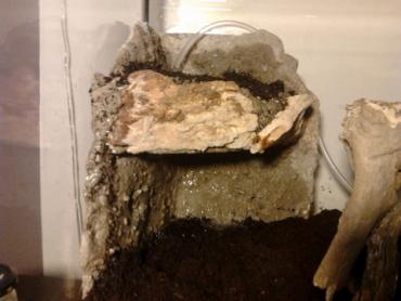 Podczas spaceru z psem po parku zauważyłem nieśmiało wychylający się z krzaków korzeń,który to od razu znalazł miejsce w moim przyszłym biotopie. Po pewnym okresie wygrzewania jego i jego mieszkańców wziąłem się za preparowanie.