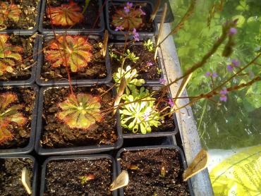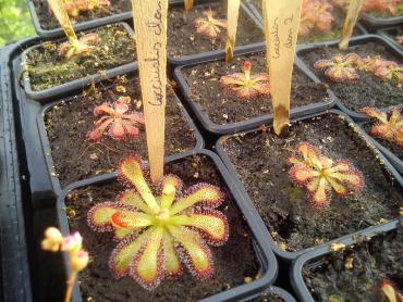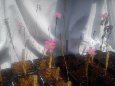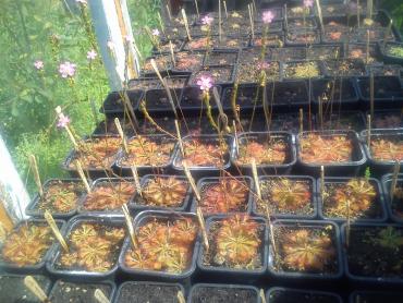 Cocciualis clon2 z tegorocznych nasion. D.binata puszczająca pęd. Spatulaty giant i sylidium debile z kwiatami. Big mouth i młode d.tokaiensis.