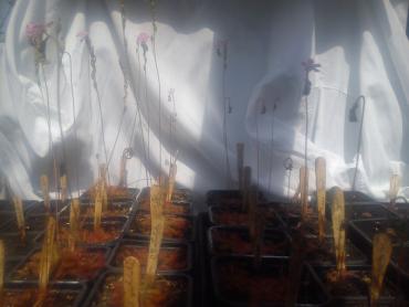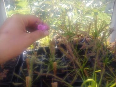 Kolejna porcja robiona telefonem i dlatego prosiłbym o nienarzekanie na jakość Spatulatowy las czyli szał kwitnienia pędów. Kwitnąca Indica Któryś tam już z kolei kwitnący capensis. Kto by to liczył I ofiara jednego z nich. Rosiczki łapią i trawią po prostu wszystko co do nich się przykeli. Muszę w końcu powrzucać zdjęcia innych roślin bo rosiczki bokiem wychodzą.