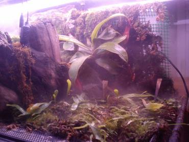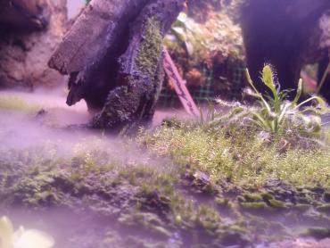 Czas odświeżyć i pokazać jak to się rozwija. Scorpioides padło na ament,cefal stoi w zielonej barwie,bloody mary i pływacze zarastają terra,jakaś rosiczka się zaplątała,communis nie wzeszło,barbapapa wypadła z gry(mieszka w szklarni). Doszły tłustosze weser,które rosną i w szaleńczym tempie zarastają terra. O mchach już nie wspomnę. Proszę sobie pooglądać i porównać z pierwszymi dniami tego terra ''Owadożery we mgle''