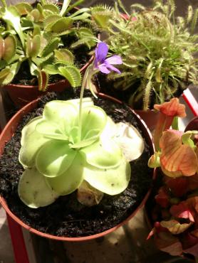 Jeśli wykopię z archiwum coś wartego uwagi, to się tutaj znajdzie, ale póki co, można już przejść do aktualnych zdjęć. Moje obecne królestwo wygląda tak: A przynajmniej wyglądało, bo teraz poza zbiornikami zostały tylko pływacze, a reszta opala się już na balkonie. Sphagnum podoba się także U. calycyfida, który rośnie w oczach i ma zamiar kwitnąć Tuż przed zimowaniem Darlingtonia wypuściła pierwszy dorosły liść, a teraz go trochę napompowała. P. lusitanica szaleje w terrarium. Zdjęcie zrobione jakiś czas temu. Jakieś trzy kwiaty temu...