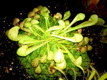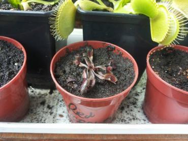 Dziękuję za dopisanie do listy. Postaram się odświeżać temat w miarę regularnie, a po takich słowach uznania, rośliny będą zapewne jeszcze lepiej rosły! Jak wcześniej wspomniałem "Dentate Traps' miała basen z powodu zeszłorocznych upałów i nie zaszkodziło jej to wcale. Prolifera szaleje! Ustawiona bliżej LEDów zrobiła się tak mokra, że prawie sklejają się jej gruczoły. No i wybarwia się na różne kolory! A propos wilgotności, to trzymam ją w akwarium (wilgotność >90%), w jakimś obleśnym pojemniku po ciastkach i czystym torfie, praktycznie nie podlewając. Na początku, kiedy pojemnik stał poza akwarium i był zamknięty, wyglądało to tak: Darlingtonię kupiłem w marcu zeszłego roku i usilnie starałem się zapewnić jej warunki, jakie można znaleźć w opisach hodowli. A później dałem spokój z chłodzeniem podłoża, podlewaniem wodą z lodówki, nie zalewaniem podłoża i zaczęła rosnąć. Zdjęć jest sporo, tylko muszę się przez nie przekopać, bo często robię po kilka podobnych ujęć, ale brakuje czasu na selekcję. Uzbierało się już prawie 2,5 tysiąca...
