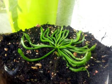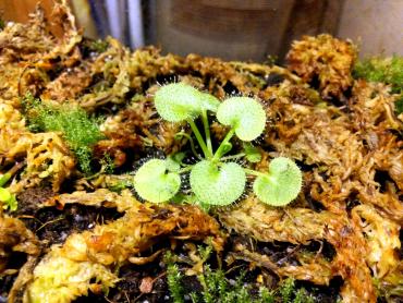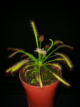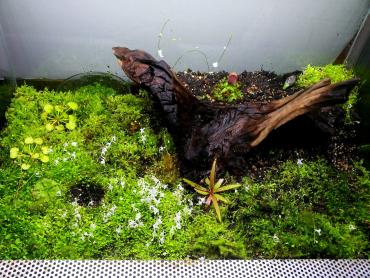 Okazało się, że mech pod heliamforą zawiera drobny dodatek w postaci U. longifolia Zaczęły się też kombinacje z rozmnażaniem: D. muscipula z pędu kwiatowego D. prolifera z liścia i pędu kwiatowego Drosera x [pulchella x nitidula] znalazła odpowiednie warunki w terrarium i zaczęła kwitnąć
