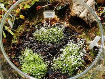 Hej! Efekty przerosły moje oczekiwania, gdyż stolony i listki przebiły się przez warstwę torfowca, pięknie eksponując się na obrzeżach kieliszka. Doczekałem się nawet wielu pędów kwiatowych. Niestety kompozycja nie istnieje już, ponieważ nie wytrzymywała warunków parapetowych, a trzymanie jej w kieliszku i terrarium było po prostu nieestetyczne i zbędne. Myślę, że wykonanie takiego kieliszka w wersji XXL byłoby najlepszym rozwiązaniem na parapet. To dało mi do myślenia, by wykorzystać szklaną kulę którą posiadam, ale to w dalekiej przyszłości do jakiś epifitów. Zdjęcia niestety nie mam - jak zaczęła marnieć to kiepska z niej była modelka. Natomiast mogę się podzielić z Wami zdjęciem szklanej kuli wraz z U. sandersonii, zrobionej przez Carnisanę, na wystawie roślin owadożernych w Ogrodzie Botanicznym UJ Kraków w 2014r: Pozdrawiam ! -
