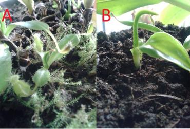 Hej ! Od jakiegoś czasu, zastanawiam się nad różnicą w wyglądzie młodych odrostów dzbaneczników. Zawsze przeglądając oferty sklepów internetowych, aż za serce chwytają i urzekają zdjęcia malutkich dzbaneczników z typcimi dzbanuszkami. Podczas gdy większość moich, rośnie bez dzbanków, dopiero po pewnym czasie zaczynają dzbankować. Miałem kiedyś starego dzbanecznika, który wypuścił odrosty, a te z kolei wypuściły swoje... I zostając dzbanecznikowym pradziadkiem, zauważyłem że niezmienne warunki nie maja na to wpływu, gdyż każdy z odrostów wyglądał inaczej. Dla rozjaśnienia dodam zdjęcie dwóch rodzajów odrostów ventraty z tej wiosny i może ktoś mi odpowie co ma na to wpływ? No i co mogę zrobić by wszystkie zaczynały rosnąć jak na zdjęciu A ? Oczywiście rozważałem czy wpływ mają na to dzbanki dolne, pośrednie i górne oraz kiedy ten cykl przy odrostach zaczyna się powtarzać..