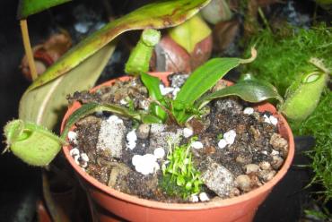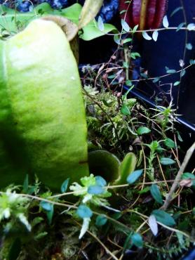Pięknie rośnie N. bicalcarata, sama jest największa i nie przeszkadza jej to, że stoi w wodzie (jakieś 0,5 cm) i że jej korzenie rozłożone są po całym dnie terrarium.