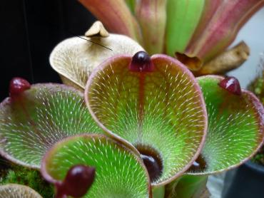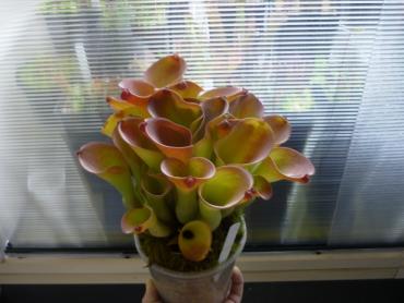 a to najmniejsza exa jaka chyba istnieje w obiegu- H. exa 'Apacapa, sall hairy'. Rozmiar to max 4-5cm- nie więcej. Na zdjęciu w pełni dorosła roślina, posiada wszystkie cechy taksonomiczne exappendiculaty ("bąbel", spiczaste zakończenie itp.). Zobaczymy co wyjdzie z tego: pulchella Churi x (nutans giant x tatei). Roślina z dzbankami wysokości 7cm skrzyżowana z rosliną o dzbankach wysokości 50 cm
