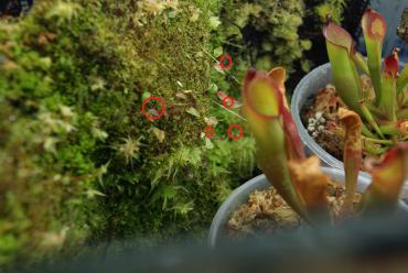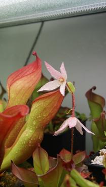 Witam! U. campbelliana jak i inne pływacze z orchidioides zawsze w okresie zimowym, czyli przeważnie Grudzień-Luty, przechodziły okres spoczynku a następnie kwitły w miesiącach Marzec-Kwiecień. W tym roku spoczynek trwał ok 3 tygodnie i nieomal wszystkie pływacze budzą się do życia- niektóre z niespotykaną wręcz ilością pędów kwiatostanowych. Campelliana 6 (!) pędów! Rok temu tylko dwa. U. humboldtii ' broad leaf, Cerro Neblina' puszcza nowe liście post spoczynkowe o długości 50 cm O_o- może dochowam się takich gigantów jak na zdjęciach z Nebliny . Zdjęcie mocno nieostre- ciężko uchwycić tyle maleńkich elementów na jednym zdjęciu.