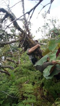 powyżej 20m, w dodatku na takiej wysokości wszystko jest mokre i pokryte grubą warstwą mchu także wspinaczka bez ekwipunku może zakończyć się sromotnie . tak to wyglądało: tak nawiasem to niewiele brakowało a przygoda na mindanao mogła zakończyć się tragicznie.
