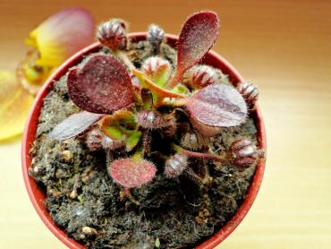 Oboje z chłopakiem posiadamy cephalotusa, rośliny są tej samej wielkości, kupione tego samego dnia. Różnica polega jedynie na tym, że u mnie cefal żyje sobie cały czas na południowo-zachodnim parapecie, a u lubego na północno-zachodnim (ma tam mniej więcej tyle światła, ile ja na swoich wschodnich parapetach). Różnią się one wyglądem, mój cefal co chwilę tworzy nowe bukłaczki, ma tylko kilka liści i jest cały mocno wybarwiony, ten drugi zaś odwrotnie, jest zieloniutki, a bukłaczków trzeba szukać pod masą liści.