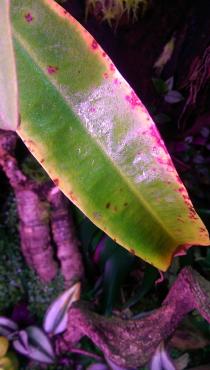 Na liściach moich dzbanków (hookeriana, blady marry, ampullaria) pojawiają się jakieś niepokojące mnie plamy. Dzbanki trzymam w terrarium - światła ok. 12-13h. Na początku myślałem, że to może kwestia aklimatyzacji (zmiany na liściach, spowolniony wzrost, brak dzbanków), ale trwa to już chyba zbyt długo (ponad pół roku), dlatego też proszę o Waszą opinię...