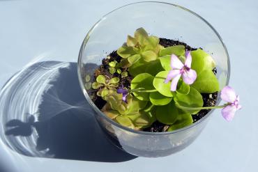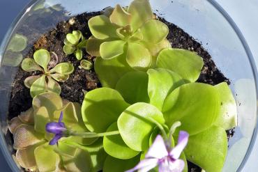 Po wymianie rocznych świetlówek na regałach w fitotronach rośliny reagują znacznie lepszym wybarwieniem. Pinguicula ‘Weser’