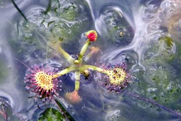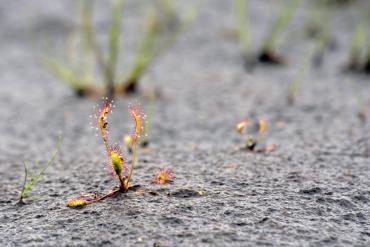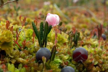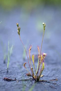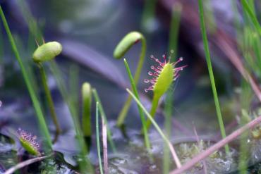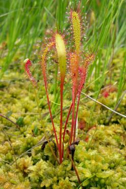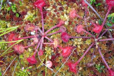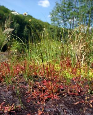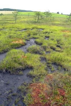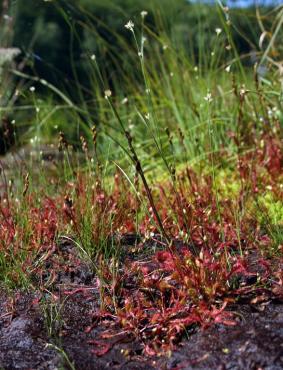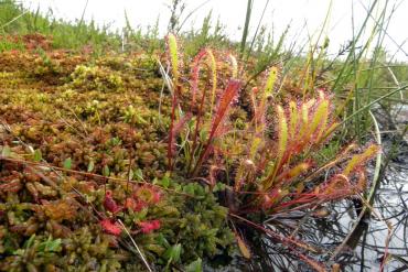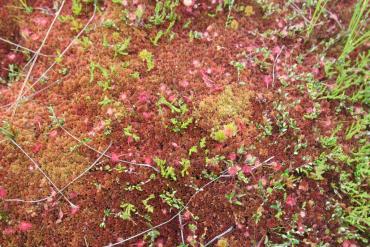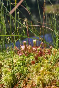 Występuje oczywiście cały komplet roślin typowych dla torfowisk wysokich, łącznie z rosiczkami, których strasznie dużo nie ma, ale zróżnicowanie powierzchni torfowiska jest wystarczająco wysokie, aby znalazły się różne co do wilgotności miejsca, preferowane przez poszczególne gatunki. -