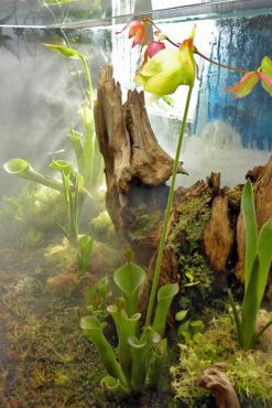 Mam to szczęście, że posiadam dobre warunki do rozwijania swojej pasji, a dodatkowo możliwość zdobywania środków finansowych z różnych źródeł zewnętrznych ułatwia mi powiększanie kolekcji i realizowanie różnych pomysłów. Oczywiście nie finansuje tego Uczelnia bo środków na to nie ma, ale mam odpowiednie pomieszczenia, zapewnione oświetlenie i stały dostęp do bardzo dobrej wody zdemineralizowanej, co dla wielu hodowców jest dużym obciążeniem. Ze względu na konieczność prezentacji tych roślin dla osób zwiedzających Wydział Biologii czy przychodzących na wystawy muszę uciekać w stałe ekspozycje w terrariach bo rośliny bardzo dużo tracą jeżeli prezentuje się je w takich zwykłych doniczkach produkcyjnych. Choć nawet w takiej formie wzbudzają ogromne zainteresowanie i to na ogół te najprostsze w hodowli gatunki ale wyglądające zdrowo i okazale. Nie wiem czy to dobrze że wzbudzam przede wszystkim zazdrość, raczej wszystkie moje działania idą w zupełnie innym kierunku, głównie celem jest zainteresowanie przeciętnego śmiertelnika uprawą roślin mięsożernych aby pokazać mu ile trudu wymagają w uprawie, a co za tym idzie w jak szczególnych warunkach występują w naturze - stąd bardzo ważne jest zachowanie takich bagiennych siedlisk (na Pomorzu jest ich na szczęście jeszcze całkiem sporo). Uprawa owadożerów myślę że jest znacznie ciekawszą alternatywą w stosunku do storczyków - modnych od kilku ładnych lat. Wiadomo, że nie trzeba nikogo na tym forum namawiać do uprawy roślin mięsożernych, ale myślę że warto coraz częściej uciekać z takich upraw w doniczkach do tworzenia bardziej wymagających nie tylko doświadczenia ale i pracy terrariów, większość forumowiczów potrzebne doświadczenie ma a na pewno zdobędzie, a dzięki temu nasze rośliny staną się ozdobą pokoi a nie piwnic. Wiele osób już na forum zachęcało do takiego właśnie podejścia, i jest ono możliwe do zrealizowania dla większości owadożerów poza niewielką grupą typowo wysokogórkich gatunków. Ja również mógłbym wielu forumowiczom pozazdrościć kolekcji, czy helek, dzbaneczników, tłustoszy czy nawet rosiczek, bo mam faktycznie sporo gatunków ale głównie są to rośliny łatwe w uprawie. Są osoby które ewidentnie specjalizują się w wąskiej grupie gatunków i u nich są one bez wątpienia najładniejsze. Widzę w tym jednak tylko dużą szansę własnego rozwoju dzięki wymianie nie tylko roślin ale głównie doświadczeń, i stąd już planuję realizację kilku nowych zbiorników.