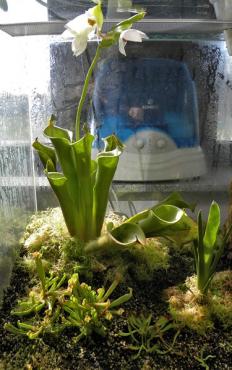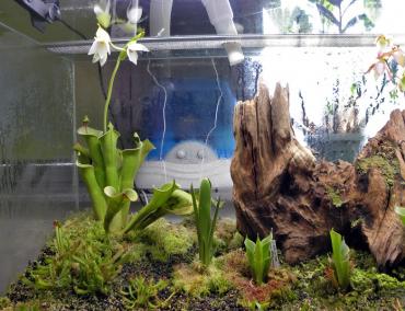 Paludarium z helkami zarasta coraz bardziej, dzięki coraz większej ilości światła słonecznego. Po przekwitnięciu H. parva, zakwitła H. tatei. Zwarta niegdyś rozeta H. parva znacznie się rozchyliła i kącie każdego liścia wypuszcza nową pułapkę H. tatei w rozkwicie