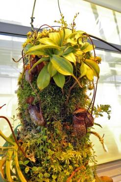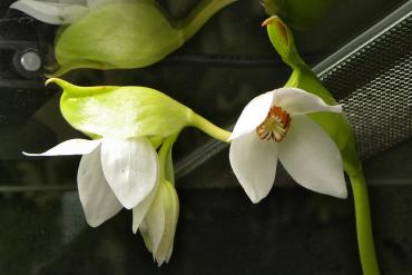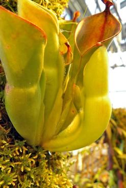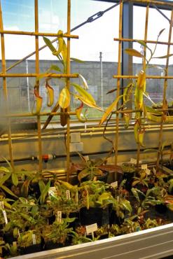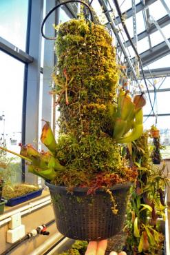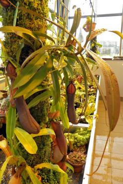 Coraz więcej słońca, więc w szklarni rośliny wyraźnie ruszyły, zwłaszcza na wiszących słupkach szaleją torfowce i żurawina, przyjęły się także paprocie i pływacze, a heliamphora midoxa zaczyna kwitnąć Dla coraz większych dzbaneczników zamontowałem bambusowe drabinki, bo od momentu jak poszły w pnącza i kwitną, bez podpór coraz słabiej dzbankują.