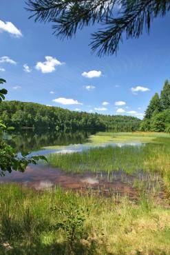 Dla mnie osobiście bardziej ciekawym zbiornikiem jest Jezioro Pałsznik, bardziej malownicze, a brzegi częściowo zajęte przez brzeziny bagienne, dominuje tutaj rosiczka okrągłolistna, a w wodzie często trafiają się pływacze. -