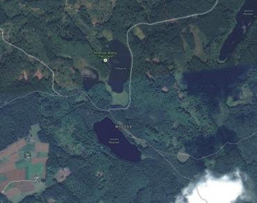 Przedstawiam kolejne miejsce występowania owadożerów na Pomorzu, tym razem blisko Trójmiasta, niedaleko prezentowanego wcześniej jeziora Zawiad. Rezerwat Przyrody „Pełcznica” leży pomiędzy 54032’16’’ a 54031’25’’szerokości geograficznej północnej oraz 18014’13’’ a 18015’6’’długości geograficznej wschodniej, 1,5 km na południowy-wschód od miejscowości Sopieszyno, 7 km na południe od Wejherowa. W jego skład wchodzą trzy ubogie jeziora (Wygoda, Pałsznik i Krypko) i przyległe, ciekawe tereny torfowiskowe. Do rezerwatu prowadzi tylko ścieżka rowerowa, którą można dojechać od Bieszkowic, bądź Parkingu leśnego przy jeziorze Borowo opodal miejscowości Nowy Dwór Wejherowski. Kilka lat temu byłem jednym z wykonawców Projektu Ochrony tego Rezerwatu stąd mam wiedzę co ciekawego tam występuje, m.in. Drosera anglica, D. rotundifolia, Utricularia minor i Utricularia vulgaris oraz cała gama torfowców: Sphagnum angustifolium Torfowiec waskolistny, Sphagnum capillifolium Torfowiec ostrolistny, Sphagnum cuspidatum Torfowiec szpiczastolistny, Sphagnum denticulatum Torfowiec ząbkowany, Sphagnum fallax Torfowiec kończysty, Sphagnum fimbriatum Torfowiec frędzlowaty, Sphagnum flexuosum Torfowiec pogiety, Sphagnum fuscum Torfowiec brunatny, Sphagnum girgensohnii Torfowiec Girgensohna, Sphagnum inundatum Torfowiec zanurzony, Sphagnum magellanicum Torfowiec magellański, Sphagnum palustre Torfowiec błotny, Sphagnum riparium Torfowiec okazały, Sphagnum rubellum Torfowiec czerwonawy, Sphagnum russowii Torfowiec Russowa, Sphagnum squarrosum Torfowiec nastroszony i Sphagnum subsecundum Torfowiec jednoboczny. Najuboższe torfowiska są nad jeziorem Wygoda, nieco żyźniejsze nad Pałsznikien (głównie brzeziny) a nad jeziorem Krypko występują olsy - czyli znacznie żyźniejsze lasy bagienne. Najpierw jezioro Wygoda Widok od strony torfowiska na torfową wyspę z sosnami, na skraju torfowiska widoczne obfite miejsce występowania obu rosiczek -