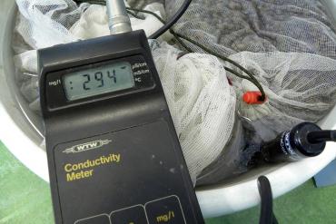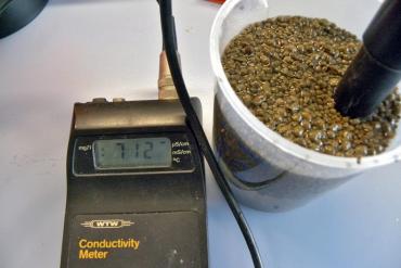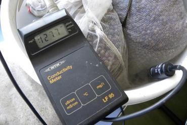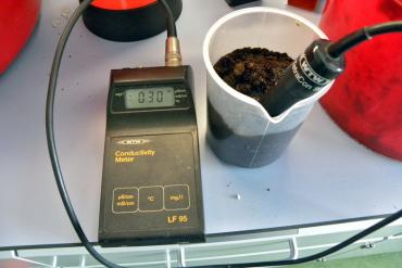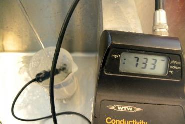 Witam zainteresowanych kontynuacją tematu. Największym błędem jaki mi się przydarzył, raczej jaki popełniłem, przy pierwszych paludariach to zastosowanie złych materiałów do podłoża - a mianowicie sprasowanego kokosa, który był z nawozami lub zasolony. Teraz nauczony boleśnie eliminacją ze swojej kolekcji najwrażliwszych heliamfor sprawdzam każdy użyty materiał począwszy od piasku, torfu czy nawet perlitu, a przede wszystkim trwała kontrola wody. Mam tą wygodę że wodę zdemineralizowaną mam z systemu rozprowadzonego po większości pomieszczeń, a bardzo wydajna stacja ze zbiornikiem ponad 300 litrów znajduje się w jednym z magazynów Jakość wody jest bardzo dobra, przewodnictwo poniżej 1 mikroS/cm, Jest ona nawet zbyt pozbawiona minerałów, ze zwykłej destylarki jest ok 7-10 mikroS/cm, podlewanie taką wodą bardzo szybko wypłukuje wszystkie jony z podłoża, co nie jest aż tak korzystne, dlatego bardzo często do wody do podlewania i zraszania roślin dodaję trochę humusowej wody (ok. 100 ml/1,5 l), którą odciągam z paludariów gdy jest za wysoki jej poziom (ma ona na ogół od 100-150 mikroS/cm). Dla porównania woda kranowa ma w Gdańsku na ogół powyżej 700 mikroS/cm, ale czasem jest ok. 500 jak wymienią wkłady z węgla akt. na świeże. Z mediów często stosowanych w uprawie roślin mięsożernych jest keramzyt, zwłaszcza do przygotowywania podłoży dla dzbaneczników, a ja również stosuję go jako pierwsza warstwa we wszystkich paludariach. Jest on jednak bardzo silnie zanieczyszczony, wpływa na to głównie sposób jego otrzymywania czyli wypalanie gliny - co przyczynia się do wysokiej zawartości soli mineralnych. Bardzo łatwo jednak ten zmineralizowany materiał usunąć przez kilkukrotne przepłukanie wodą zdemineralizowaną. Co się ma rozpuścić to się wtedy rozpuści i zostanie wypłukane, w innym przypadku pozostaje w terrarium. Ja dla ułatwienia płukania keramzyt umieszczam w siatkach z firanki, można zakupić takie siatki jak do prania skarpetek. Zalewam wodą na 24 godziny po czym wymieniam na nową wodę. Dla przykładu przewodnictwo w różnych frakcjach keramzytu: Po czterokrotnym przepłukaniu z blisko 1300 mikroS/cm spadło do poniżej 300: Oczywiście bardzo ważna jest jakość torfu, tutaj raczej w przypadku kwaśnego torfu sphagnowego nigdy aż tak dużego zmineralizowania nie ma, ale bardzo często przewodnictwo jest za wysokie, a na workach często podają że może być nawet do 500 mikroS/cm. Torf nie powinien być czarny, tylko brązowy i włóknisty czyli z widocznymi elementami roślin w strukturze. Już przewodnictwo wody w takim torfie powyżej 150 mikroS/cm wskazuje na zaawansowane procesy mineralizacji (rozkładu) torfu, co ogranicza jego zastosowanie dla większości roślin, efektem jego stosowania będzie bardzo szybkie pojawianie się na podłożu glonów i wykwitów soli, a rozwój korzeni roślin będzie ograniczony. Staram się używać torf, którego roztwór z wodą zdemineralizowaną ma przewodnictwo poniżej 50 mikroS/cm Piasek kwarcowy ze sklepów zoologicznych czy perlit po zalaniu wodą zdemineralizowaną mają na ogół przewodnictwo około kilkunastu mikroS/cm, więc mogą być używane bezpośrednio do podłoża bez płukania, ale żeby o tym zdecydować najlepiej niewielką ich ilość trzeba zawsze sprawdzić przez pomiar przewodnictwa czy TDS (całkowita zawartość soli), które jest wyliczane z przewodnictwa.