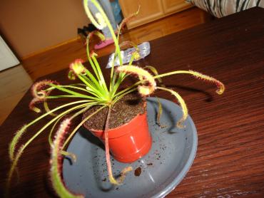 No to jak wczesniej pisałem, rosiczka rośnie w torfie sphagnum, ma pełne słońce od około 12.30 no i wcześniej utrzymywałem stale około 2 cm wody destylowanej. Od zakupu kilka tygodni temu nie przesadzałem rośliny. To chyba na tyle :-P
