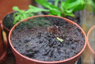 Wymień podłoże, nowe nasyp do krawędzi doniczki bo siewki teraz rosną w cieniu. Z wodą mineralną to był istny zamach na rośliny. Nie powtarzaj tego nigdy. Najlepsza dla roślin będzie woda demineralizowana(czyli zupełna odwrotność mineralki) lub z filtra odwróconej osmozy.