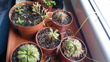 Pisałem na początku. Dwa lata temu miałem dwie muchołówki i rosiczki przylądkowe wiosną odpadły muchołówki ze względu na przymrozki albo niedostateczną ilość światła a jedna rosiczka została zasuszona gdy zostawiłem je pod opiekę a drugiej niestety nie udało mi się odratować w starciu z pleśnią. Teraz zagospodarowałem całe obecnie dostępne miejsce. Jak widać po tłustoszach, to raczej roślinki u mnie nie będą cierpiały na brak owadów (uroki posiadania gospodarstwa rolnego).