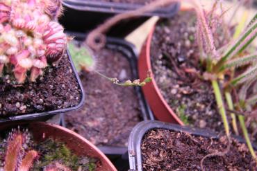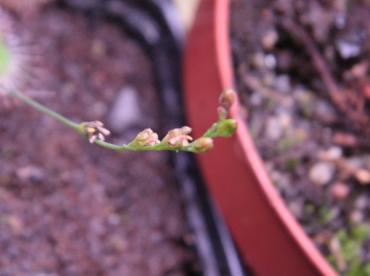 Hej, czy macie jakiś pomysł dlaczego rozwijający się kwiat dorasta do stadium pękającego pąka i następnie powoli zasycha nie rozkwitając (zdjęcie) ? Dotyczy to D.oblanceolata (młoda roślina) i D.felix (dorosła). Latem inne rosiczki kwitły bez problemu, pięknie. Warunki są cały czas takie same: 96W światła, wilgotność nie mniej niż 40%, temp. do 27 st.C, w nocy kilka stopni mniej, w miarę regularne karmienie.