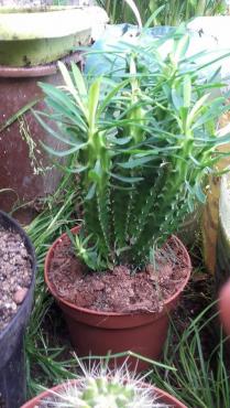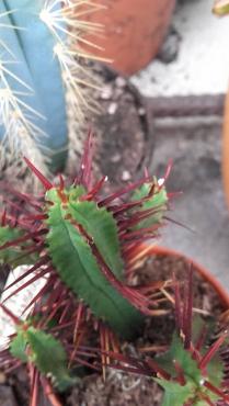 8. Do mojej kolekcji dołącza nowa i bardzo niebezpieczna roślina. Na wstępie piszę że nie ma nic wspólnego z kaktusem. To Euphorbia pentagona czyli Wilczomlecz. Roślina jest piękna ale jej sok zabójczy więc muszę uważać a zwłaszcza że w kolcach też znajduje się sok (jeszcze sprzedawca miał kilka lekko draśniętych roślin i nawet z kolców lał się sok).