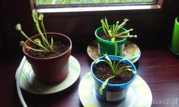 Witam  Chciałbym zaznaczyć,że jest mój pierwszy temat i jednocześnie pierwszy mój wpis na tym forum,wiec z góry przepraszam za błędy popełnione przy robieniu tego tematu.Jest to moja pierwsza muchołówka.Dostałem ją pod koniec września i od kiedy zagościła na moim południowym parapecie rosła bardzo szybko.Jednak teraz przyszedł czas zimowania a ja nie mam kompletnie pojęcia o tym.Wiem,że są porady na forum ale one nic nie dadzą bo są zbyt ogólne,wiec nie piszcie,że mam poszukać na forum.Problem jest z podlewaniem.Muchołówka oczywiście straciła(czytałem tutaj,że to norma) stare liście.Jednak nie mam pojecia co ile mam ją podlewać.Na forum jest napisane,że co 2 tygodnie..Tylko czy to jest normalne,że po 4 dniach muchołówka całkowicie oklapła?Wszystkie liście zwisają z doniczki a torf odchodzi od doniczki.Nie wiem czy mam ją podlewać co te 4 dni bo to jest jej optymalna częstość podlewania czy co 2 tygodnie jak pisza na forum i liczyć,że nie zdechnie.Muchołówka zimowana jest w temperaturze około 9 stopni.Czy jest możliwość,że po prostu nie zaczęła zimować?Zaznaczam,że już nie rośnie.Proszę o pomoc bo nie chciałbym jej stracić :)I jeszcze raz przepraszam za wszelkie nieprawidłowości