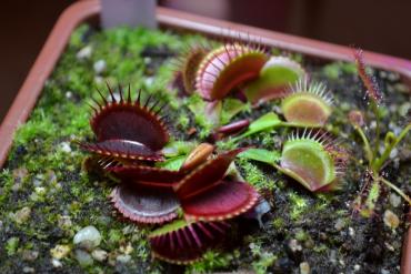 Mała aktualizacja. Jeden z dzbanków Rebeki Sopper Winiarka przerobiona na zimownie. W planach mam zamontować w środku diody power led, ale puki co oświetlane są świetlówka tornado 14W Megaman Plant. Coraz większa siewka rosiczki z grupy Petiolaris, ale wciąż za mała żeby stwierdzić co to za odmiana. Oblanceolata kwitnie już enty raz Heliamphora Minor Heterodoxa Nutans wypuszcza coraz większe kielichy Kolejna Petiolaris wciąż zastanawiam się czy to Ordensis-Broomensis lub Darwiniensis-Ordensis Drosera Derbyensis kolejny pęd kwiatowy Madagascarensis Regia Sadzonka liściowa z Cephalotusa wypuszcza coraz więcej dzbanuszków Burmanii dokarmiana rośnie bardzo szybko Sp.Giant Capillaris costa rica D.Ventusa