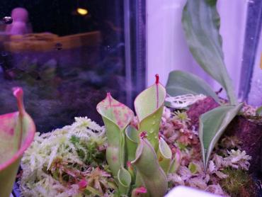 Specjalnie wyłączyłem ledy do zdjęć,oceńcie czy poprawiły się zdjęcia. Tak wygląda spełni wykształcony i wybarwiony dzbanek ventricosa Nowy cudny dzbanek suratensis Pływacze kwitną na potęgę Heliamphora midoxa jeszcze godzinę temu miała zamknięty kielich a tu taka niespodzianka Drugi dojrzewający kielich midoxy,ten będzie raczej znacznie większy Heliamphora minor wypuściła ładnie wybarwiony kielich Małe przemeblowanie w drugim terrarium dzięki któremu zyskalem dużo miejsca