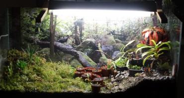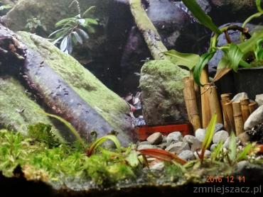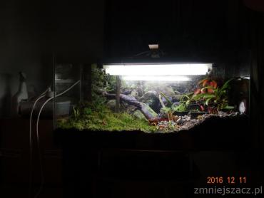 Witam Będę się starała na bieżąco aktualizować stan mojego akwarium Akwarium ma wymiary 100 cm x 40 cm (głębokość} i 50 cm (wysokość) Rośliny rosną pod ledami (świetlówka jest na chwilę - do zdjęć). Temperatura 20-25 C, wilgotność 85-95 proc.